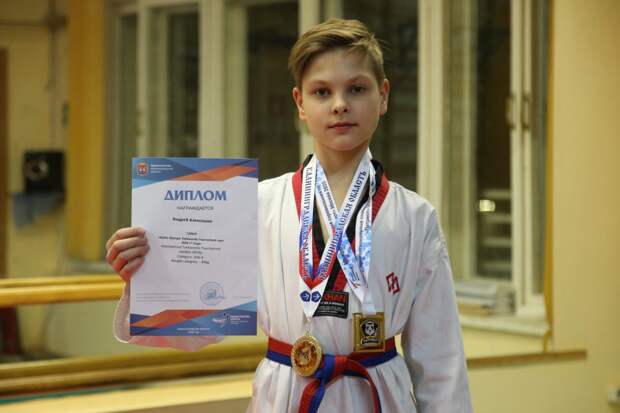 Три турнира по тхэквондо — один за другим — выиграл одиннадцатилетний Андрей Алексашин, житель Полярной улицы. Он завоевал золотые медали на межрегиональном турнире в Твери, на Всероссийском турнире «Патриот» в Москве и на Международном турнире «Кёнинг опен» в Калининграде. Андрей учится в физико-математическом лицее №1568, этим видом единоборств занимается с пяти лет.