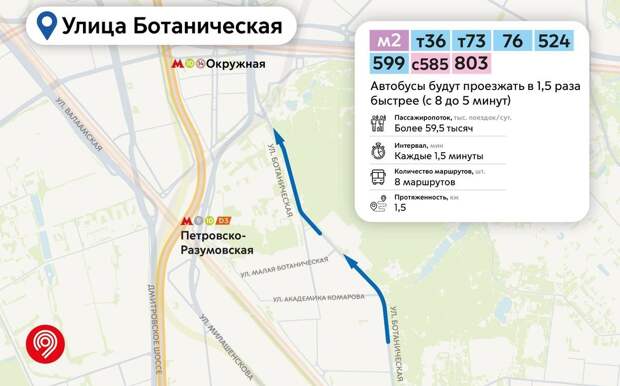 Приоритет для автобусов появится на съезде с улицы Вильгельма Пика в сторону проезда Серебрякова, а также на улице Ботанической от дома 15 до развязки с ул.