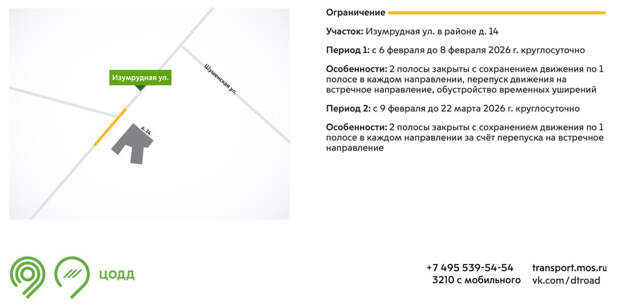 Ограничение связано с проведением инженерных работ. На ул. Изумрудной, земельный участок 12А построят жилой дом по программе реновации. Как ранее рассказал председатель Москомэкспертизы Иван Щербаков, по проекту здесь на месте расселенной пятиэтажки вырастет односекционный дом на 161 квартиру.