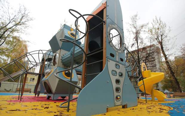 В этом году в рамках работ по комплексному благоустройству у дома №5А на улице Новоалексеевской обустроили детский игровой городок, оборудование на котором помогает детям познакомиться с космосом.
