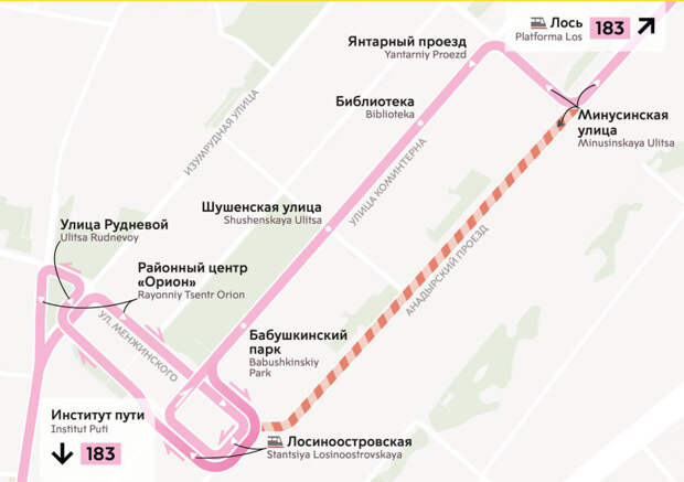 Начиная с этой субботы, 29 ноября, автобус 183 изменит свой маршрут. Вместо Анадырского проезда он будет ходить по улице Коминтерна. На машине по этому участку Анадырского проезда от ул. Минусинской до станции Лосиноостровская также не поездишь: с 29 ноября повесят «кирпичи». Также проезд на автомобиле будет запрещён от дома 2 по Шушенской до Анадырского проезда.