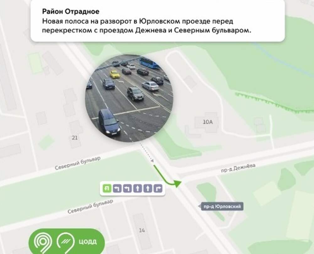 По проектам кураторов Центра организации дорожного движения в СВАО реализовали 50 изменений. Об этом сообщила пресс-служба ЦОДД. Одним из самых заметных решений стал ввод дополнительной полосы на Юрловском проезде. За счёт переразметки она появилась между пересечением с нечётной стороной Северного